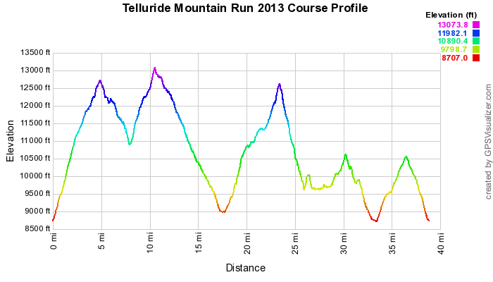 I've trained hard this spring and summer, and much of that training was with the Telluride Mountain Run in mind. Every time I needed a little motivation to train I just took a quick glance at the elevation profile for the race: