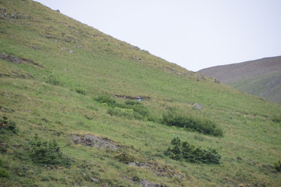 The race was honestly pretty uneventful for awhile, but just so dang enjoyable. The front of the pack had spread out a little bit by this point. I knew Scott Jaime wasn’t too far ahead of me and Adam Campbell wasn’t too far behind me, but I wasn’t sure what place I was in. I thought I was inside the top-10, but I didn’t really know and wasn’t too worried about it either. So I climbed up Green Mountain and cruised along Buffalo Boy Ridge through lush green alpine meadows and a little bit of snow here and there. Dropping into Maggie Gulch was a real treat as the wildflowers were so vibrant I had a hard time following the course markers. I got off the trail for a little bit, but it couldn’t have added more than a minute or two.