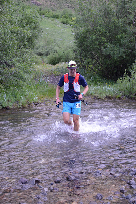 From American Basin I descended to the Grouse Gulch aid station ecstatic to see my crew. I’d been out for a long time, mostly on my own, and I just couldn’t wait to see me family and crew. My 5-year old, Ella, paced me into the aid station where I enjoyed a chair in a tent. I ate a PB+J with a thick slice of extra sharp cheddar cheese in the middle, got restocked on Honey Stinger Waffles, and just like that Jenny kicked me out and back on the trail.