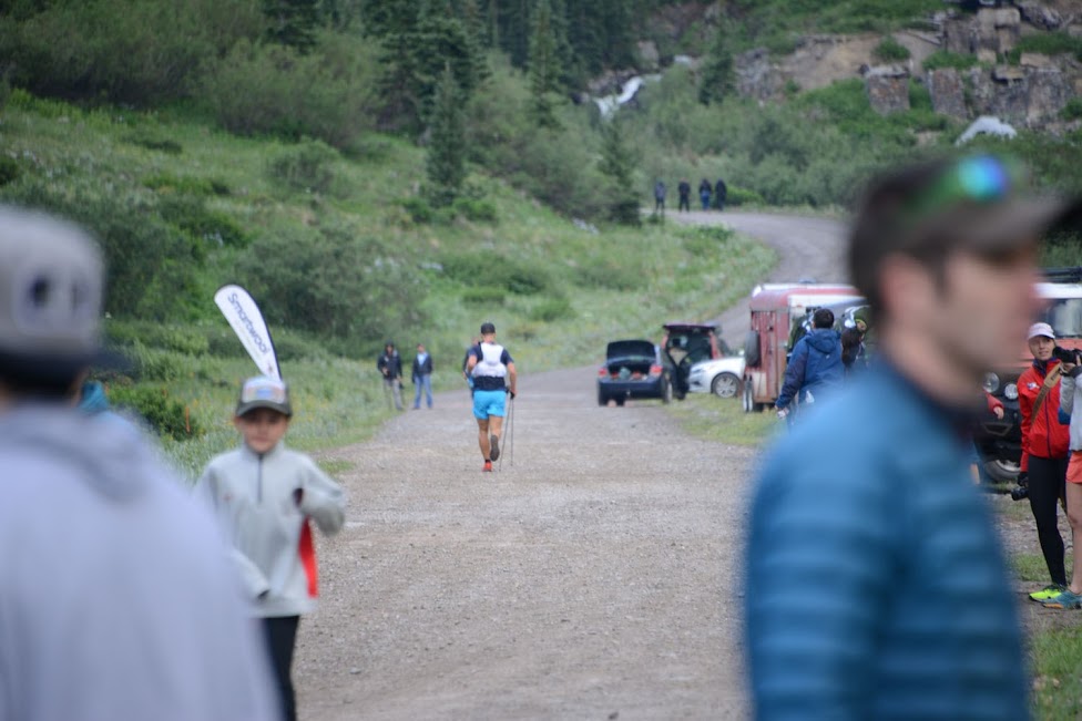 I really like the start of Hardrock because it is not a frantic rush. After a short countdown off we went, and runners were still chatting with each other while the crowd went wild. After a few rolling miles we started the first climb of up Dives-Little Giant Pass and I was just blown away. Right from the get go the scenery was everything I hoped it would be as I almost tripped over thick wildflowers while staring at the towering mountains above us. I settled into the climb with a small group that included Kilian Jornet and Anna Frost. I’ve ran with Anna before, but honestly I was a bit star struck as we hiked up and up. Kilian decided he had enough of our group after awhile and just casually ran up to the lead pack at an astonishing pace. I pulled away from that group as well, but not quite in the same manner. When I reached the top of the pass there were high fives from some hearty spectators and then it was down down down to the first aid station, Cunningham Gulch, mile 9.5ish.