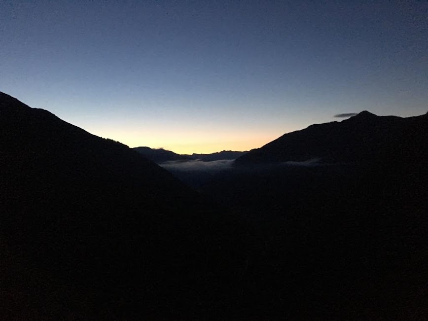 Some of the guys who went out super hard had spent an hour or more on cots in Ouray, and I left the aid station in 5th place. I think this was the first time all day I really knew what place I was in. I left Ouray with my good friend, and 2017 Bighorn 100 champion, Amanda Taglioli. We had a great time running and chatting up Camp Bird Road as the sunset. Not far up the road Iker Kerrea, who had been bonked in the tent in Ouray, came charging past me at a blistering pace. Once again, I just let him go since there was plenty of time to race later. I caught Iker again at the Governor aid station, as he was sitting there looking pretty miserable. Amanda and I were all yeehaws and high fives as we began the climb to Virginius Pass and Kroger’s Canteen. Iker followed us up the steep, snowy climb and we crested Virginius Pass together. After Kroger’s, Iker went into race mode again and bombed his was down to Telluride and left me in his dust. Once again, no worries. I also passed the women's leader, Caroline Chavoret, who led the entire race out from the get go. Somehow she and her pacer got incredibly off course coming down from Virginius, as we could see their headlamps in the dark devastatingly far off course and much further down than they should have been.